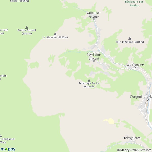 Sur la carte vous pouvez aussi afficher : Pistes cyclables Puy-Saint-Vincent