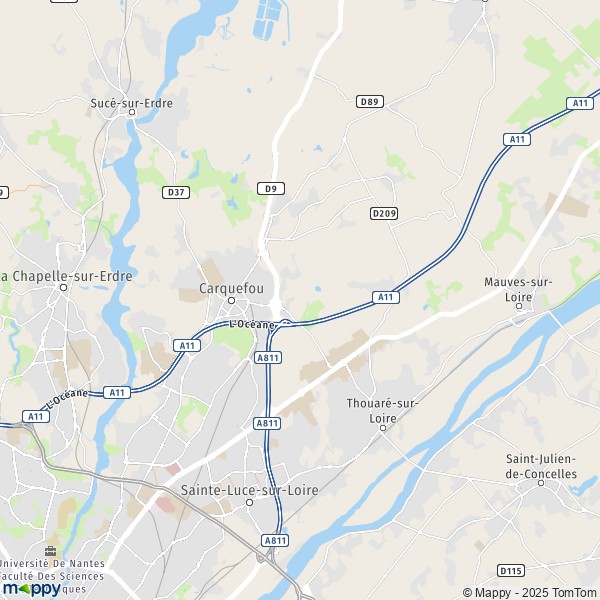 Sur la carte vous pouvez aussi afficher : Pistes cyclables Carquefou