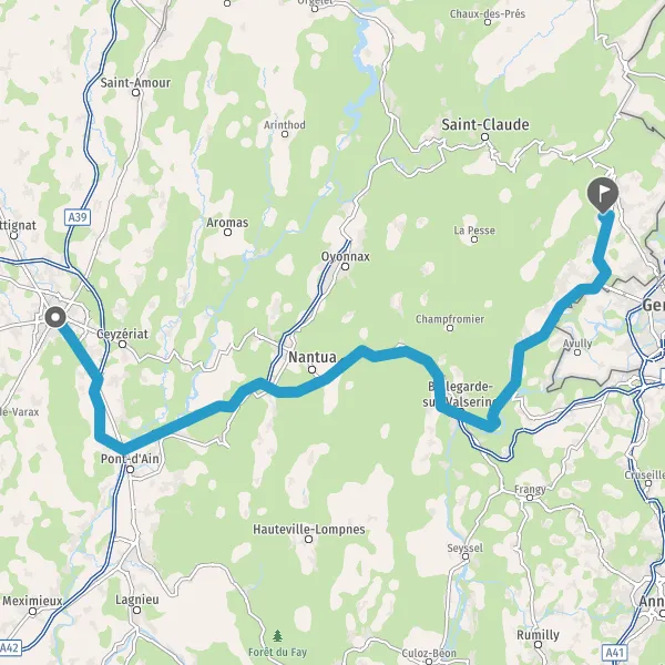 Prendre à droite et rejoindre A40 E62 E21. Continuer sur 47 kilomètres