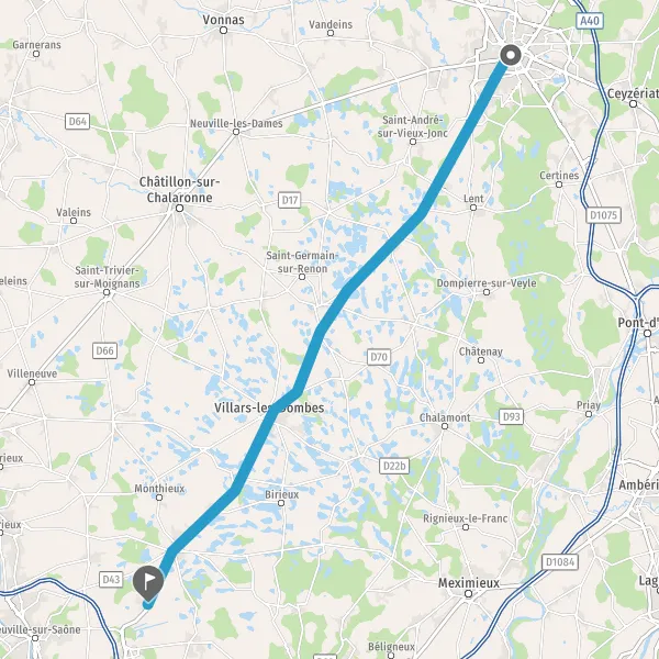 | Distance en voiture | 42,5 km à 43,8 km |