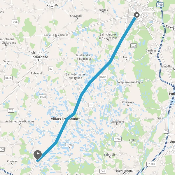 | Distance en voiture | 38,7 km à 39,9 km |
