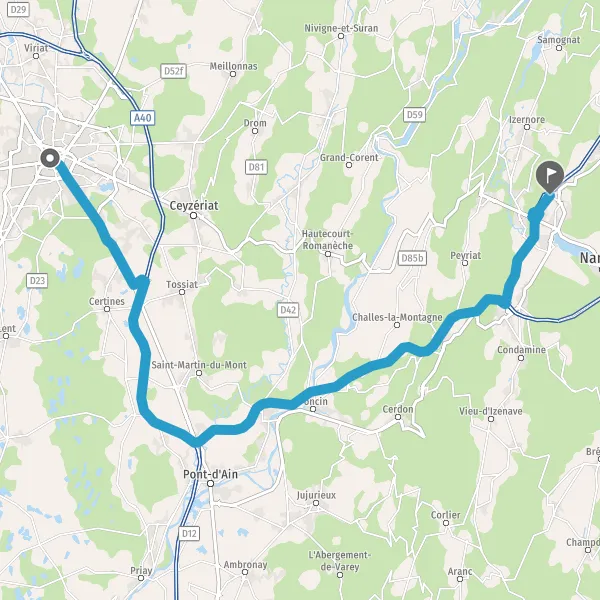 Prendre à droite et rejoindre A40 E62 E21. Continuer sur 20 kilomètres