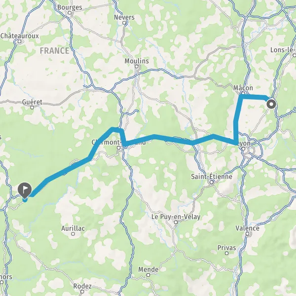 Prendre à droite et rejoindre A89 E70. Continuer sur 135 kilomètres