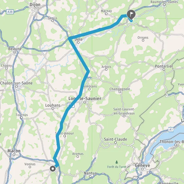 Prendre à droite et rejoindre A36 E60. Continuer sur 51 kilomètres