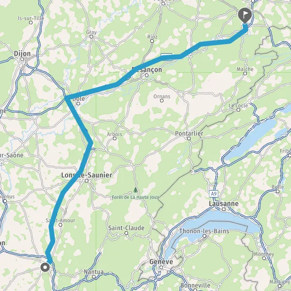 Prendre à droite et rejoindre A36 E60. Continuer sur 125 kilomètres