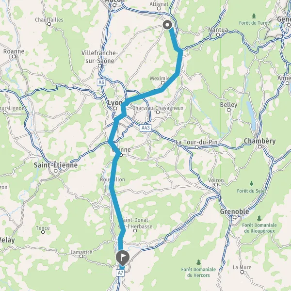 Prendre à droite et rejoindre A7. Continuer sur 87 kilomètres