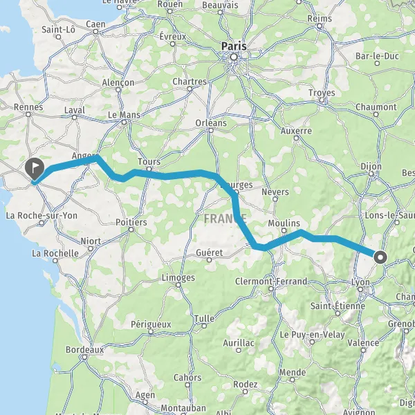 Prendre à droite et rejoindre A85 E604. Continuer sur 205 kilomètres