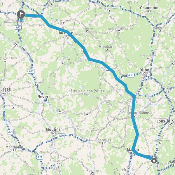 Prendre à droite et rejoindre A6. Continuer sur 190 kilomètres