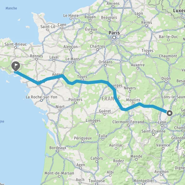 Prendre à droite et rejoindre A85 E604. Continuer sur 205 kilomètres