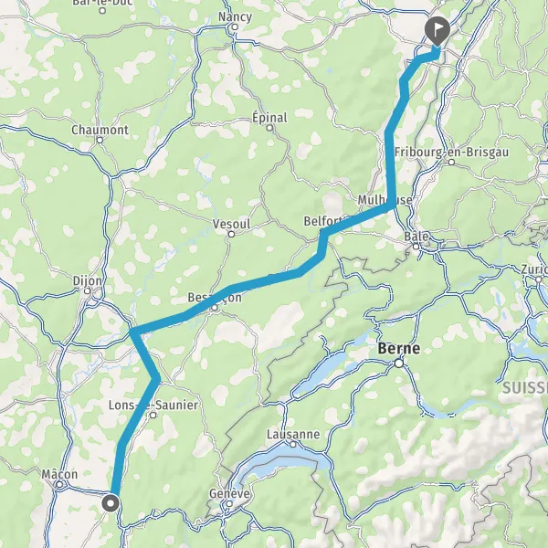 Prendre à droite et rejoindre A36 E60. Continuer sur 125 kilomètres