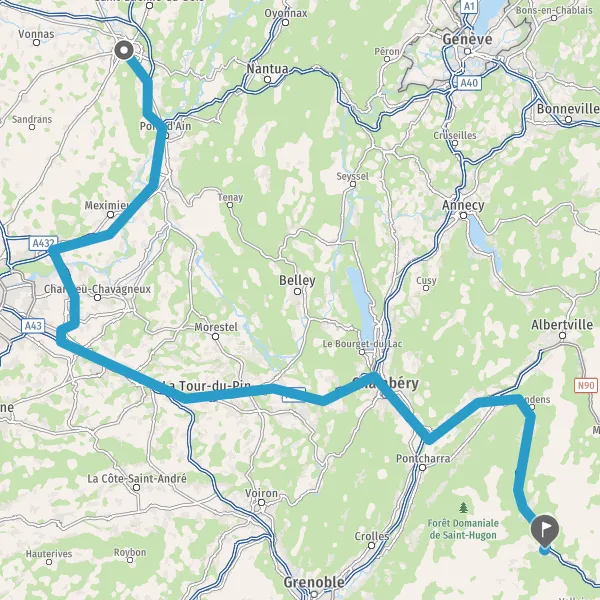 Prendre à droite et rejoindre A43. Continuer sur 19 kilomètres