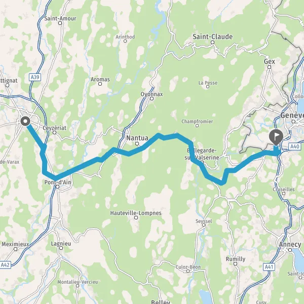 Prendre à droite et rejoindre A40 E62 E21. Continuer sur 77 kilomètres