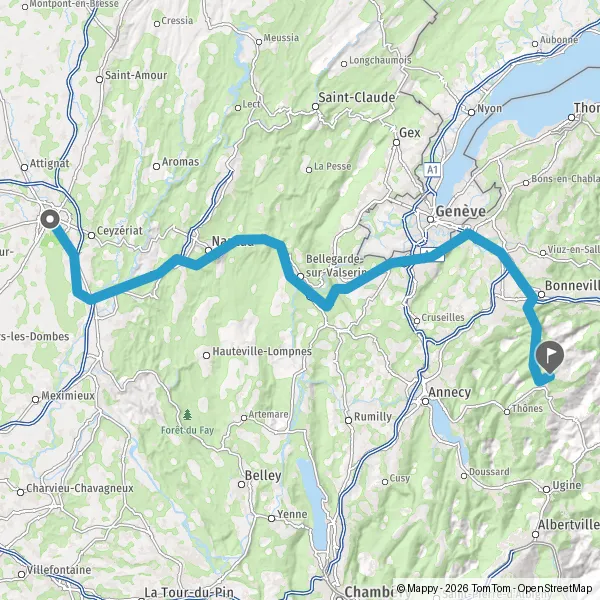 Au rond-point, prendre la 2ème sortie sur D1508 (Route d'Annecy) et continuer sur 5,9 kilomètres