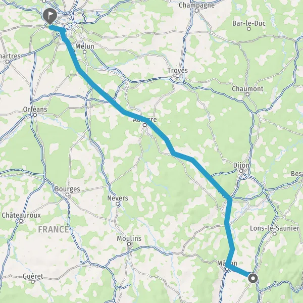 Prendre à droite et rejoindre A6. Continuer sur 294 kilomètres