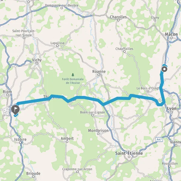 Continuer et rejoindre A89 E70. Continuer sur 77 kilomètres