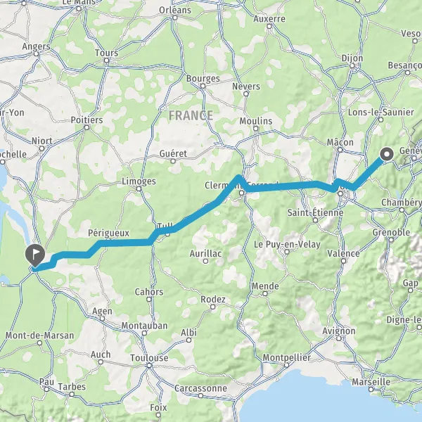 Prendre à droite et rejoindre A89 E70. Continuer sur 161 kilomètres