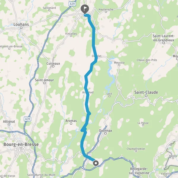 Au rond-point, prendre la 1ère sortie sur D109 (Grande Rue de Thoirette) et continuer sur 16 kilomètres