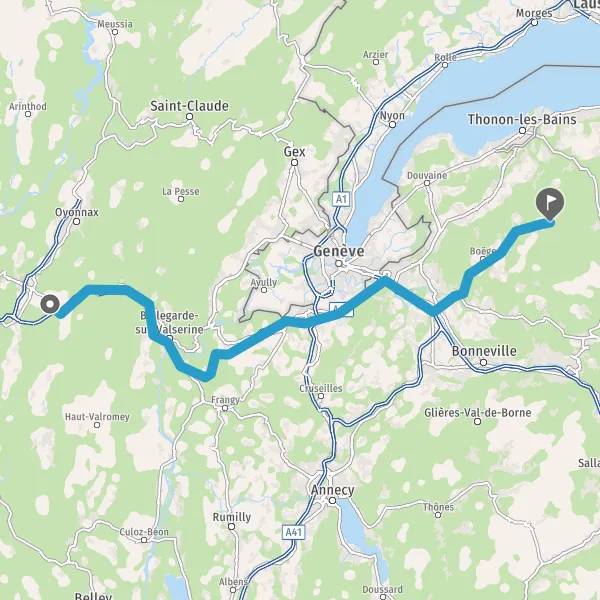 Au rond-point, prendre la 2ème sortie sur D907 (Avenue du Léman) et continuer sur 3,2 kilomètres