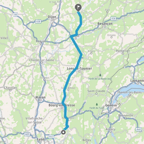 Prendre à droite et rejoindre A42. Continuer sur 34 kilomètres