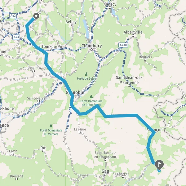 Prendre à droite et rejoindre A43. Continuer sur 3,8 kilomètres