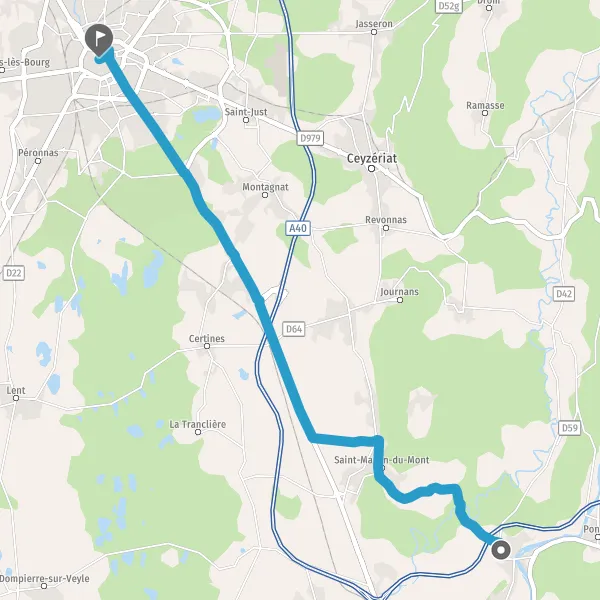 Au rond-point, prendre la 3ème sortie sur D1075 (Montagnat) et continuer sur 1,3 kilomètre