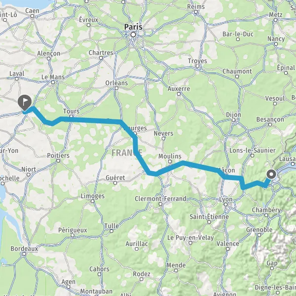 Prendre à droite et rejoindre A85 E604. Continuer sur 205 kilomètres