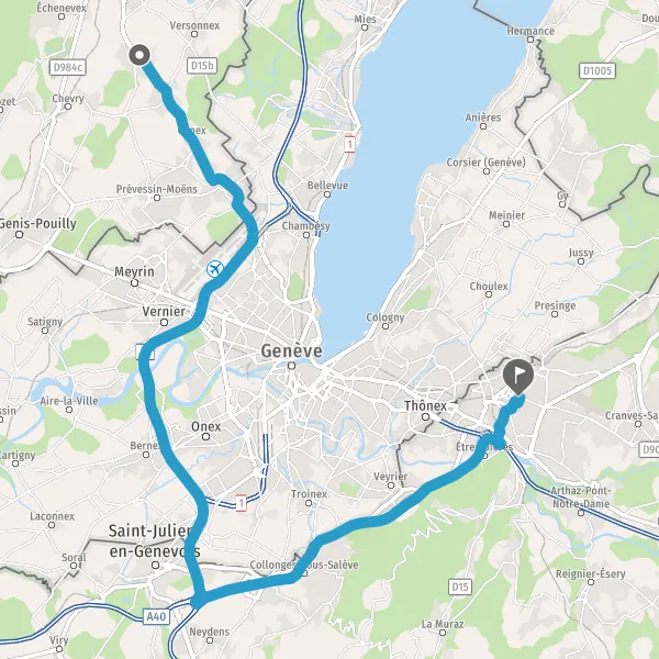 Tourner légèrement à droite sur D1005 (Rue de Gex) et continuer sur 2,5 kilomètres