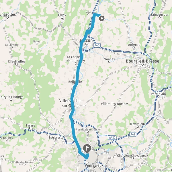 Avec le mode voiture, vous pouvez configurer vos options (type de véhicule, autoroute ou non, péage ou non, distance la plus courte), tout en ayant accès aux infos de circulation grâce à notre service d'info-trafic en temps réel. Ainsi faites des économies sur le coût ou la durée de votre voyage, en trouvant le trajet Pont-de-Vaux Lyon adapté à vos besoins.