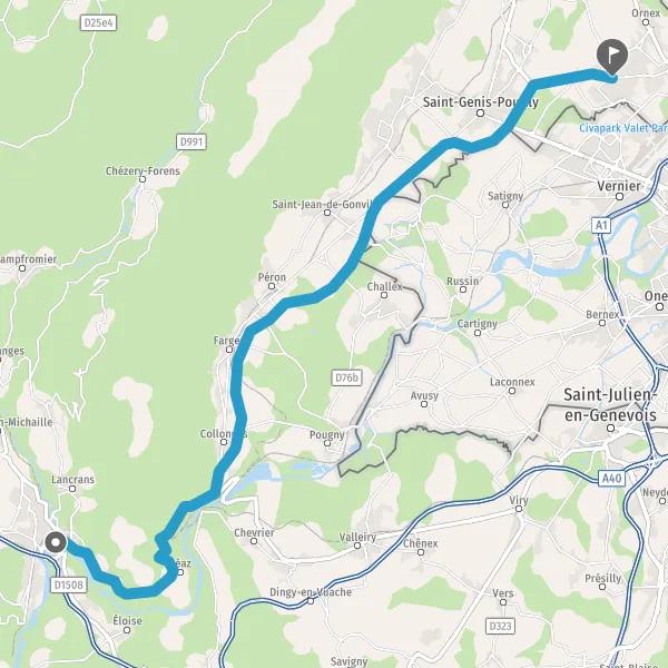 | Distance en voiture | 33,1 km à 33,2 km |