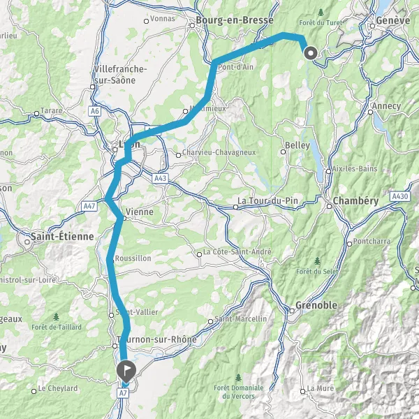 Prendre à droite et rejoindre A7. Continuer sur 87 kilomètres