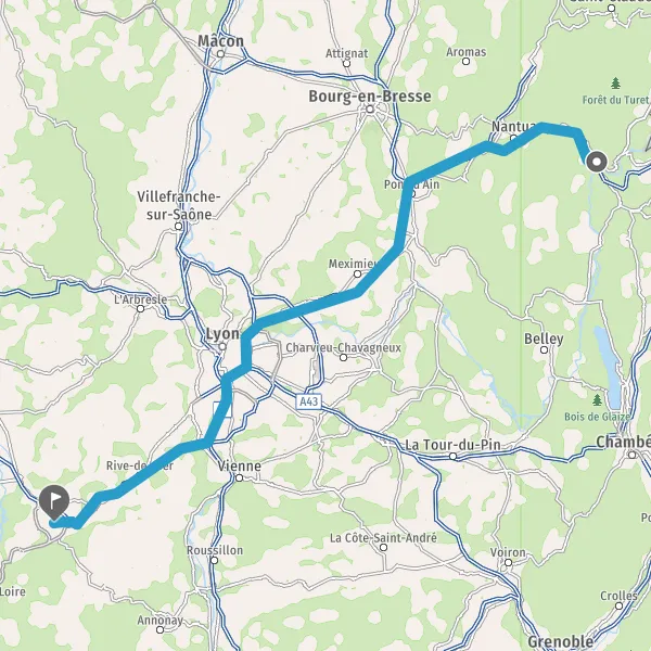 Prendre à droite et rejoindre A72. Continuer sur 1 kilomètre