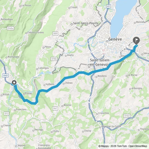 Tourner légèrement à droite sur D1206 (Route de Genève) et continuer sur 7,4 kilomètres