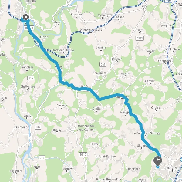 Tourner légèrement à droite sur D1508 (Route de Frangy) et continuer sur 1,3 kilomètre