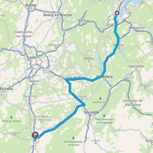 Prendre à droite et rejoindre A7. Continuer sur 87 kilomètres