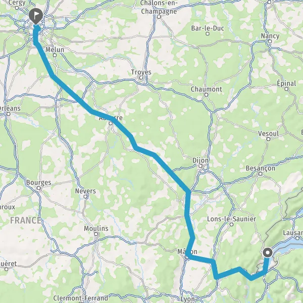 Prendre à droite et rejoindre A6. Continuer sur 294 kilomètres