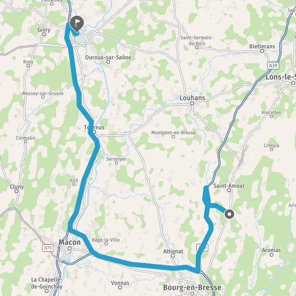 Tourner à droite sur D3 (Route de Saint-Amour) et continuer sur 2,1 kilomètres