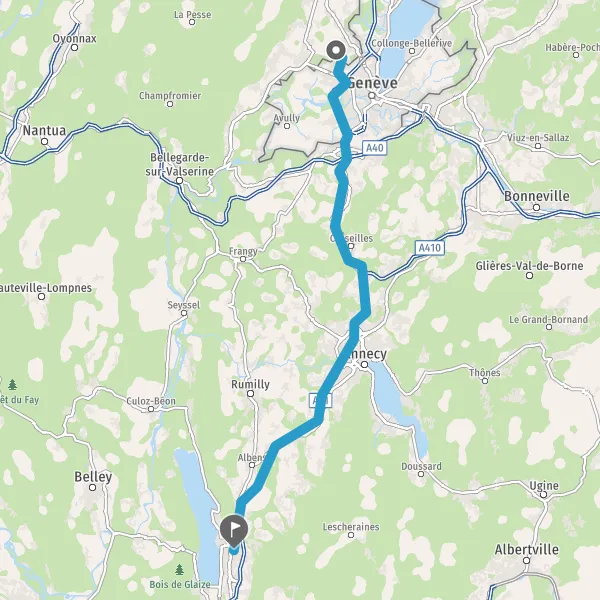 Entrer en Suisse et prendre Avenue Auguste-François Dubois sur 750 mètres