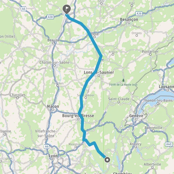 Prendre à droite et rejoindre A42. Continuer sur 34 kilomètres