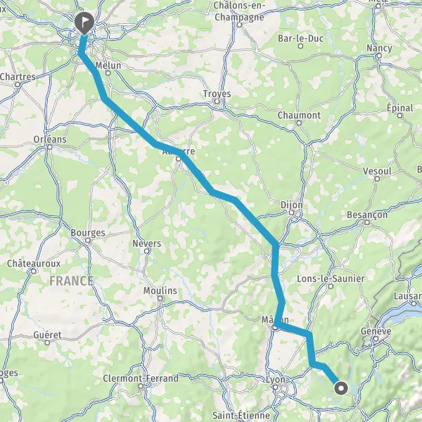 Prendre à droite et rejoindre A6. Continuer sur 294 kilomètres