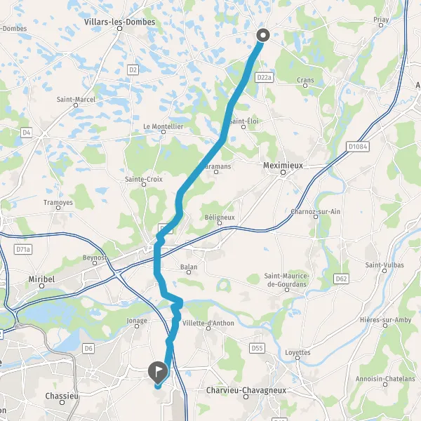 Tourner légèrement à gauche sur D22 (Route de Bourg-en-Bresse) et continuer sur 4,1 kilomètres
