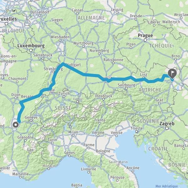 Prendre à droite et rejoindre A36 E60. Continuer sur 196 kilomètres