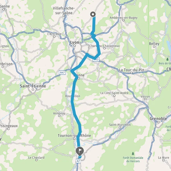 Prendre à droite et rejoindre A7. Continuer sur 87 kilomètres