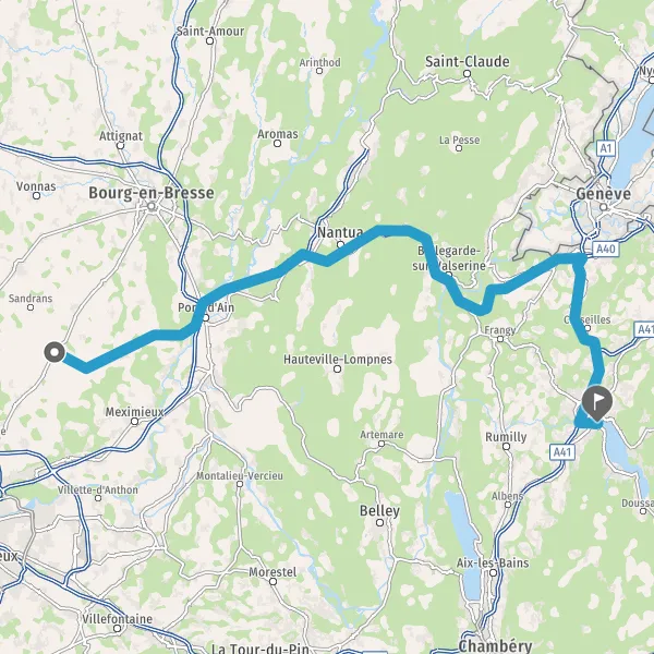 Au rond-point, prendre la 3ème sortie sur D90a (Route de Pont-d'Ain) et continuer sur 4,2 kilomètres