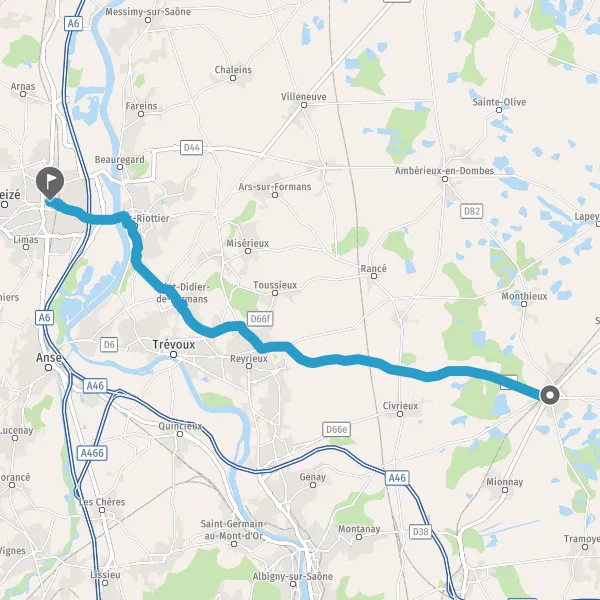 Au rond-point, prendre la 1ère sortie sur D4 (Route de Trévoux) et continuer sur 5,6 kilomètres