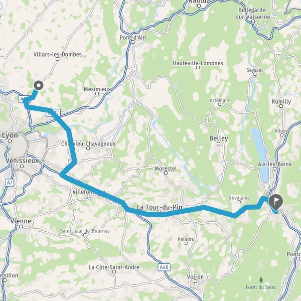 Avec le mode voiture, vous pouvez configurer vos options (type de véhicule, autoroute ou non, péage ou non, distance la plus courte), tout en ayant accès aux infos de circulation grâce à notre service d'info-trafic en temps réel. Ainsi faites des économies sur le coût ou la durée de votre voyage, en trouvant le trajet Saint-André-de-Corcy Chambéry adapté à vos besoins.