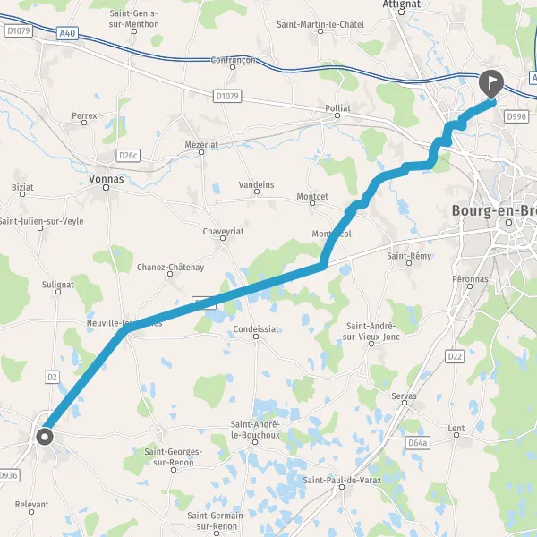 Tourner légèrement à droite sur D936 (Route de Bourg-en-Bresse) et continuer sur 3,4 kilomètres