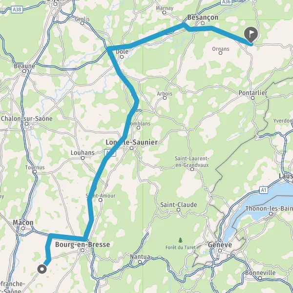 Prendre à droite et rejoindre A39. Continuer sur 111 kilomètres