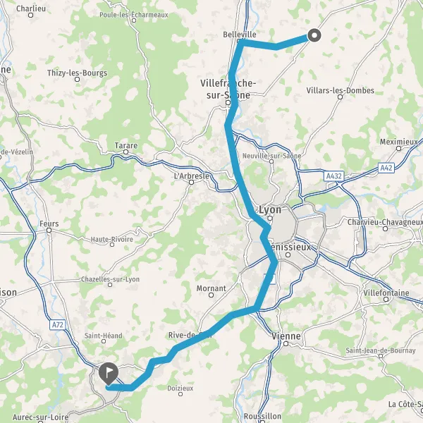 Prendre à droite et rejoindre A72. Continuer sur 1 kilomètre