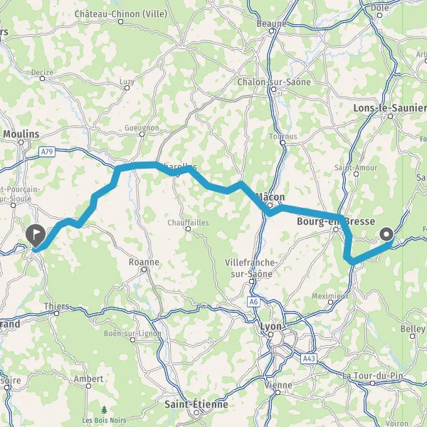 Continuer et rejoindre A89 E70. Continuer sur 55 kilomètres
