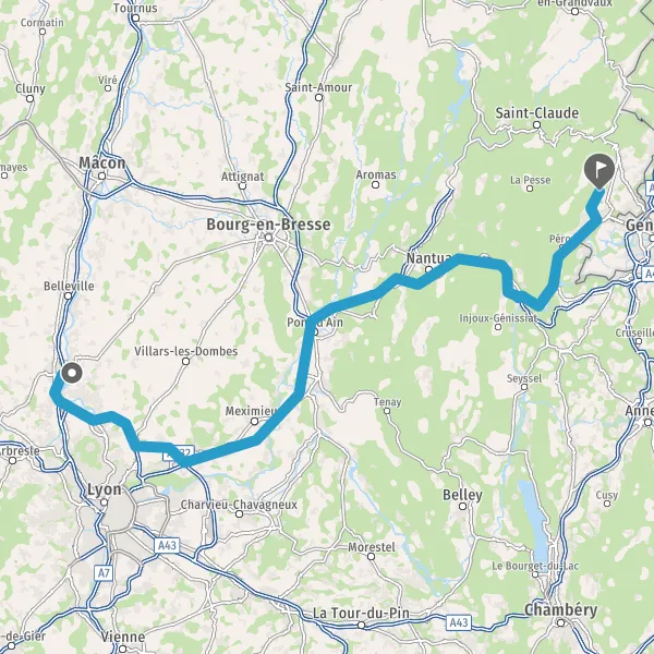 Prendre à droite et rejoindre A42. Continuer sur 40 kilomètres